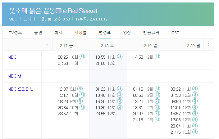 MBC 금토드라마 본방 사수를 놓치신 경우에는 위 티비편성표 다시보기 재방송 시간을 참고해서 무료 다시보기로 즐감 하시기 바랍니다. 모바일과 인터넷 접속 후 시청하실 경우 줄거리 네이버TV와 공홈을 이용해서 3분 무료 다시보기도 즐감하실 수 있습니다