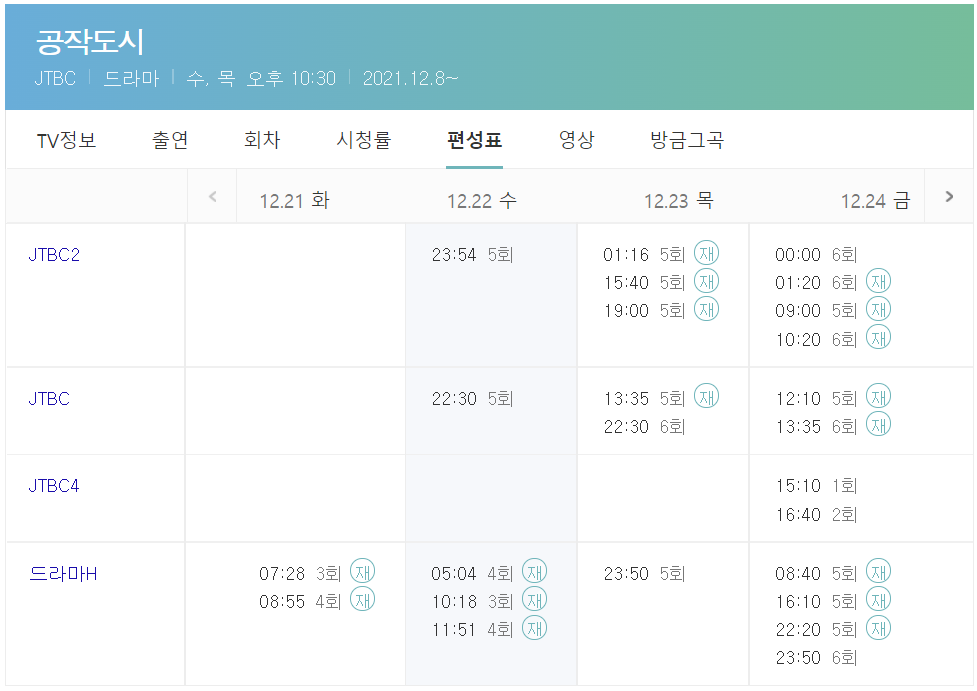 드라마 공작도시 방송편성표