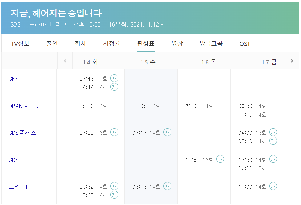지금 헤어지는 중입니다 드라마 재방송 무료 다시보기 안내