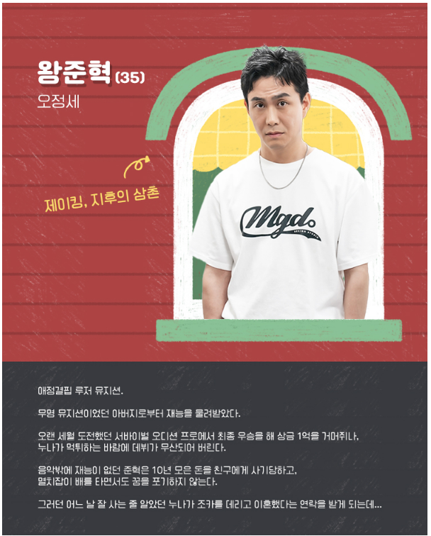 오정세 : 왕준혁 (35세) 역 - 제이킹, 지후의 삼촌.