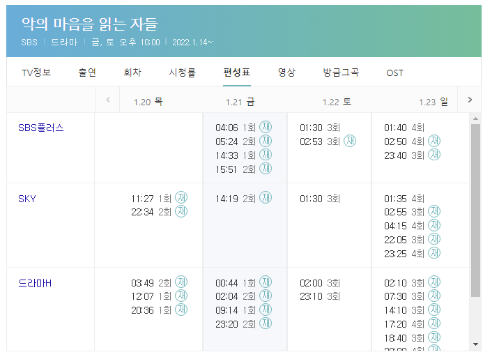 드라마 악의 마음을 읽는 자들은 2022년 1월 14일부터 방송중인 SBS 금토드라마다.