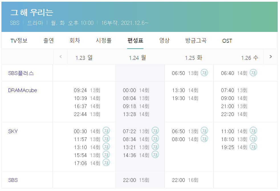 드라마 그해 우리는 방송 보는 법 시청 안내