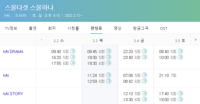 2022년 2월 12일부터 2022년 4월 3일까지 불가살의 후속으로 방영 중인 tvN 주말토일 드라마 매주 주말저녁 9시 10분에 방영이 되고 스물다섯 스물하나는 스마트폰을 비롯 TV채널을 이용하셔서 보실 경우 검색창에서 무료보기 검색을 통해서 접속 후 다시보기 시청이 가능합니다.