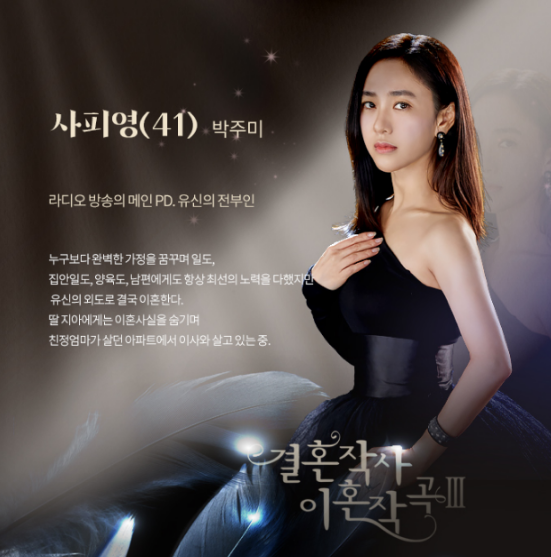 박주미 : 사피영 (41세) 역 - 라디오 방송의 메인 PD, 유신의 전처