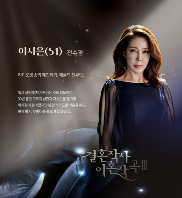 전수경 : 이시은 (51세) 역 - 라디오 방송의 메인 작가, 해륜의 전처.