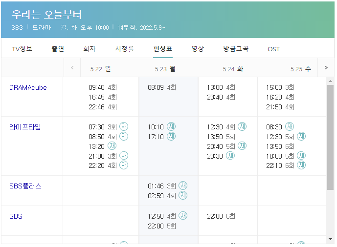 SBS 드라마 우리는 오늘부터 재방송 무료 다시보기 안내