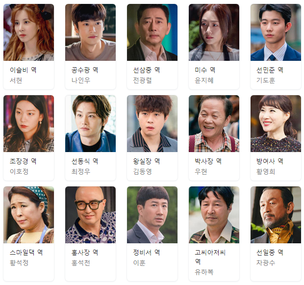 이훈 : 정현태(50세) 역 - 20년 전, 미수와 선삼중 사이의 악연의 출발점이 된 사내. 20년간 감옥에서 복역하다가, 출소한다.