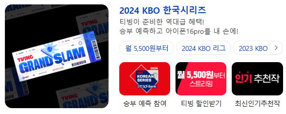 티빙의 KBO 프로야구 독점 온라인 방송 채널도 확보해서 보다 다채로운 서비스를 이용하실 수 있습니다.