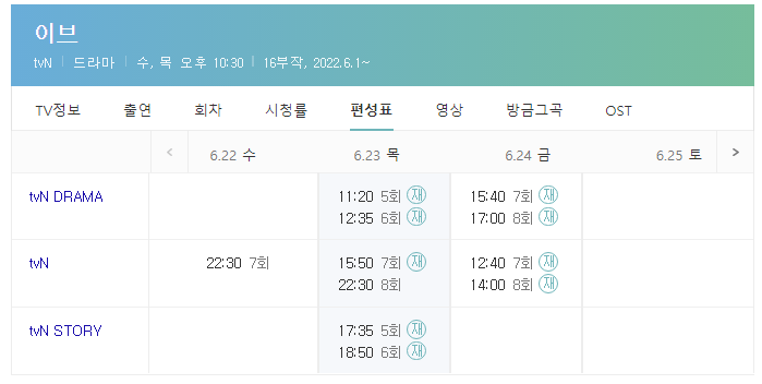 이브 본방 사수를 놓치신 경우에는 위 티비편성표 다시보기 재방송 시간을 참고해서 무료 다시보기로 즐감 하시기 바랍니다. 모바일과 인터넷 접속 후 네이버나 카카오 3분 무료 다시보기도 즐감하실 수 있습니다
