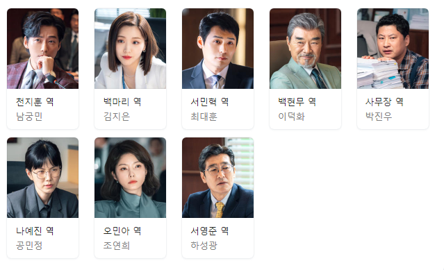 이청아 : 이주영 역 - 사회적 약자를 위하고 법 아래 나쁜 놈은 반드시 죄 값을 치러야 한다고 여기는 정의감으로 가득 찬 대형 로펌 백의 에이스 변호사