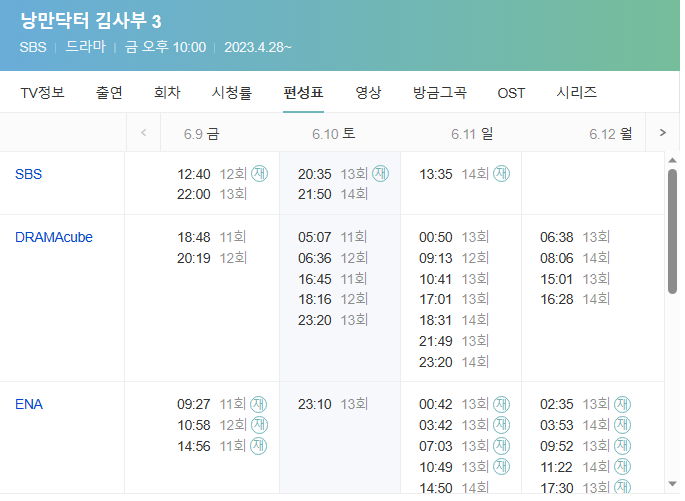 본방송을 놓치신 분들은 TV편성표 참고해서 OTT 서비스 웨이브 및 스브스를 통해서 다시보기 가능하며 모바일과 인터넷 이용해서 즐감바랍니다.