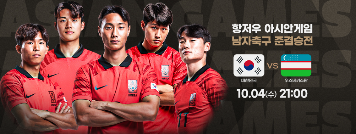 | 10월 4일(수) 21시 00분 | 한국 VS 우즈베키스탄 |