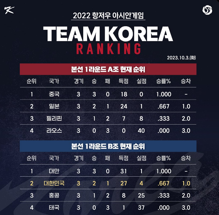 | 2023 항저우 아시안게임 야구 중계 일정 및 무료 보기 안내 (0) | 2023.10.02 |