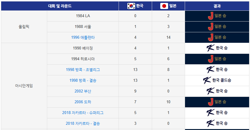 야구 만큼은 참 아쉬운 성적인데요 하지만 아시안게임 성적으로만 봤을 때는 우위에 있는 것을 확인할 수 있네요