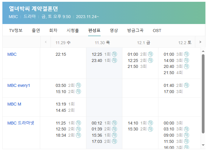 본방송 놓치신 경우에는 편성표 방송스케줄을 참고하시어 네이버 TV등 숏채널을 통한 감상도 하실 수 있습니다.