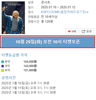 서울 공연의 티켓 예매는 10월 29일(화) 오전부터 시작됩니다