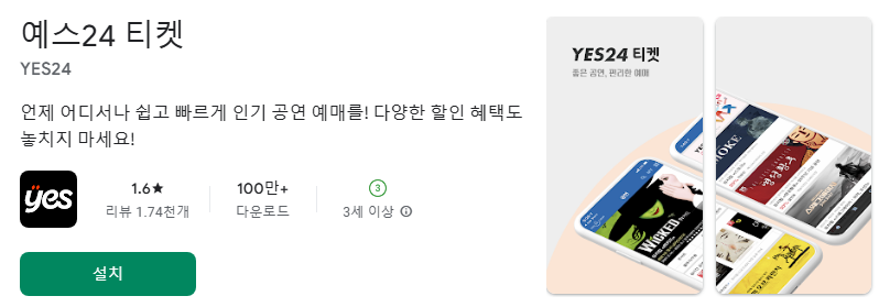 모바일로 빠르게 예스24 성공하려면 티켓 앱 설치후 예매하는 것도 추천드립니다.