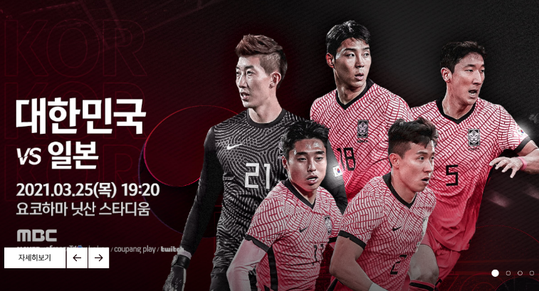 숙명의 대결 축구 한일전 대결 중계 방송이 2021년 3월 25일 19시 10분