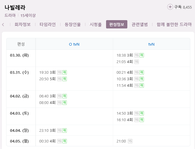 드라마넷을 이용한 티비방송편성표를 확인 하신 후