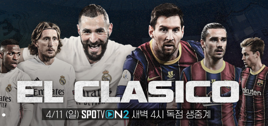 스페인 최고의 명문 축구 스페인 최고의 명문 축구 클럽이자 세계적으로도 가장 유명하다고 할 수 있는 두 팀인 레알 마드리드 CF와 FC 바르셀로나의 더비 매치를 뜻합니다. 두팀의 대결은 그만큼 가히 폭발적인 관심이 있는 만큼 이번 경기 중계는 스포티비 나우와 스포티비 온에서 생중계 할 예정입니다.