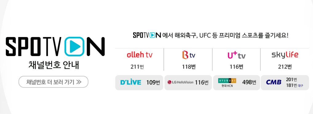 | SPOTV ON 시청 방법 스포티비온 다시보기 시청 무료 안내 (0) | 2021.04.03 |