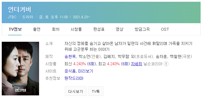 드라마 언더커버 본방을 시간관계상 못 보신 분들은 방송편성표 tv를 이용해서 다시보기 즐감하시기 바라며 인터넷이나 스마트폰 모바일을 이용해서 즐감하실 수 있습니다 무료티비보기 카카오나 네이버 미리보기 3분을 이용하셔도 즐감하실 수 있습니다.