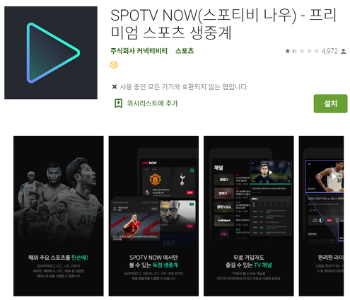 스포티비 나우 채널 어플도 이용하실 수 있습니다