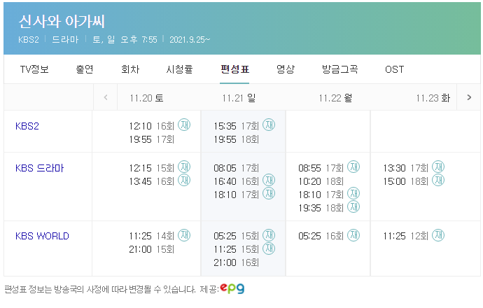 자신의 선택에 책임을 다하고 행복을 찾아가는 ‘아가씨’와 ‘신사’가 만나면서 벌어지는 파란만장한 이야기 과연 앞으로 벌어질 흥미롭고 재미난 스토리 전개가 어떻게 될지 기대해 보셔도 좋을 것 같습니다. 다시보기 방송 편성표는 아래를 참조하시기 바랍니다.
