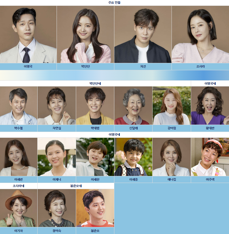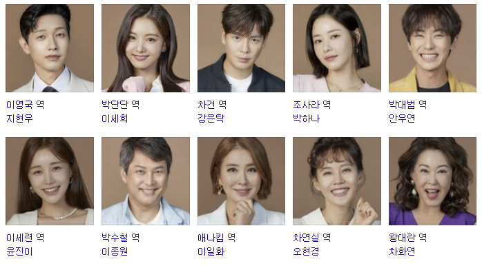 차화연 : 왕대란(60세) 역 - 이영국의 계모, 이세련의 어머니, 이재니&이세찬&이세종(진세종)의 의붓할머니, 영화배우 출신. 이기자의 중학교 동창